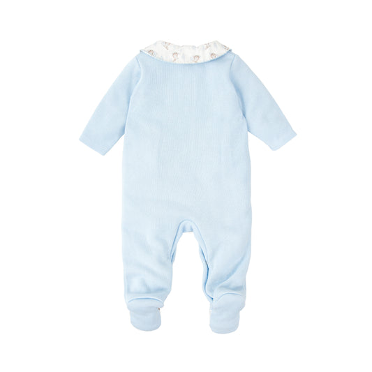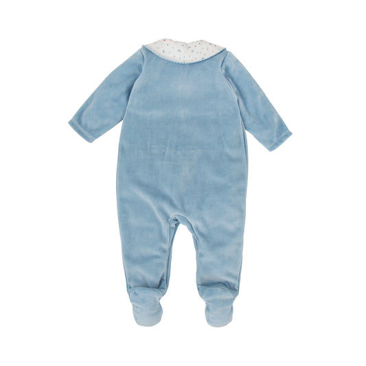 Emile et Rose Baby Boys Blue Velour Baby Grow-Front Pleats with Buttons & Collar