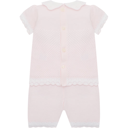 Emile et Rose Baby Girls Pink 2 piece Top and Shorts with Crocheted Hems & Embroidered Collar