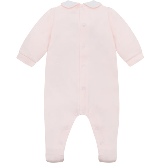 Emile et Rose Baby Girls Pink Baby Grow with Pleats and Floral Detail