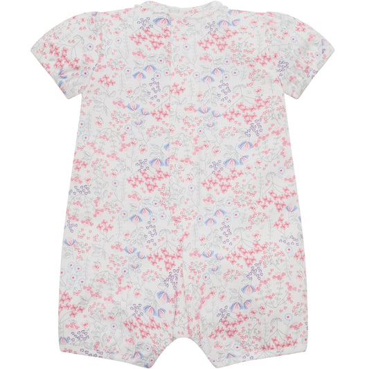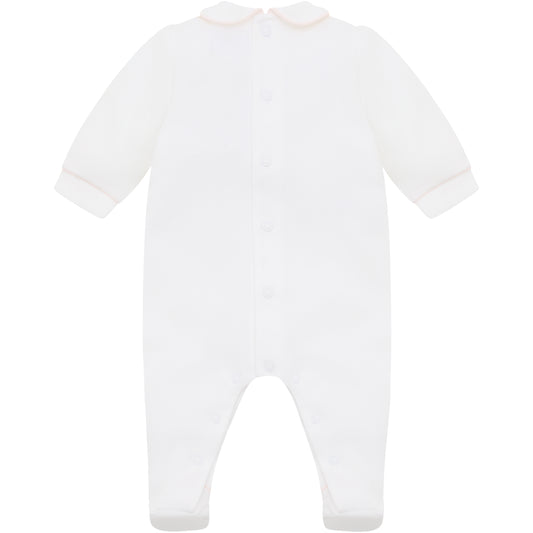 Emile et Rose Baby Girls White Baby Grow with Pleats and Pink Floral Detail