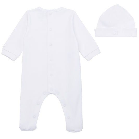 Emile et Rose Baby White Unisex Babygrow with Teddy Embroidery and Hat