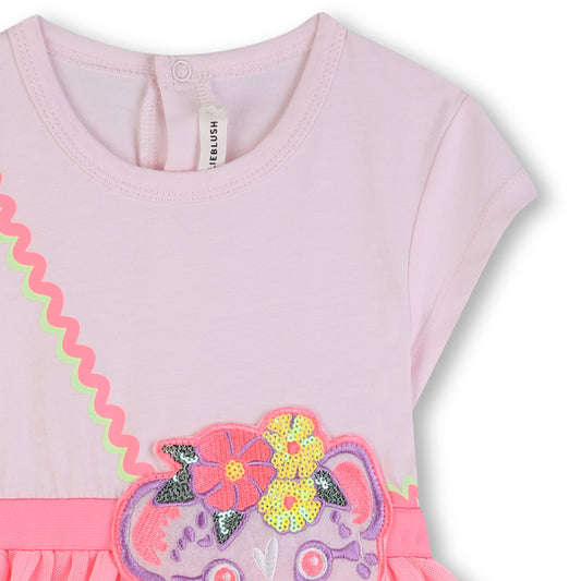 Billieblush Girls Pink Jersey & Tulle Dress with Crossbody Cat Bag Appliqué