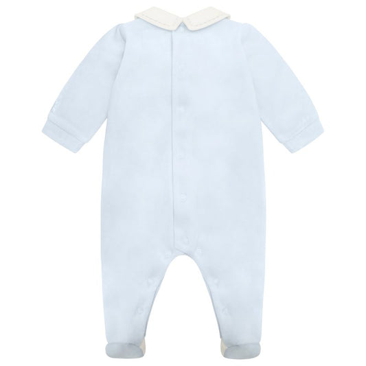 Emile et Rose Baby Boys Blue Velour Baby Grow-Front Pleats with Buttons & Collar