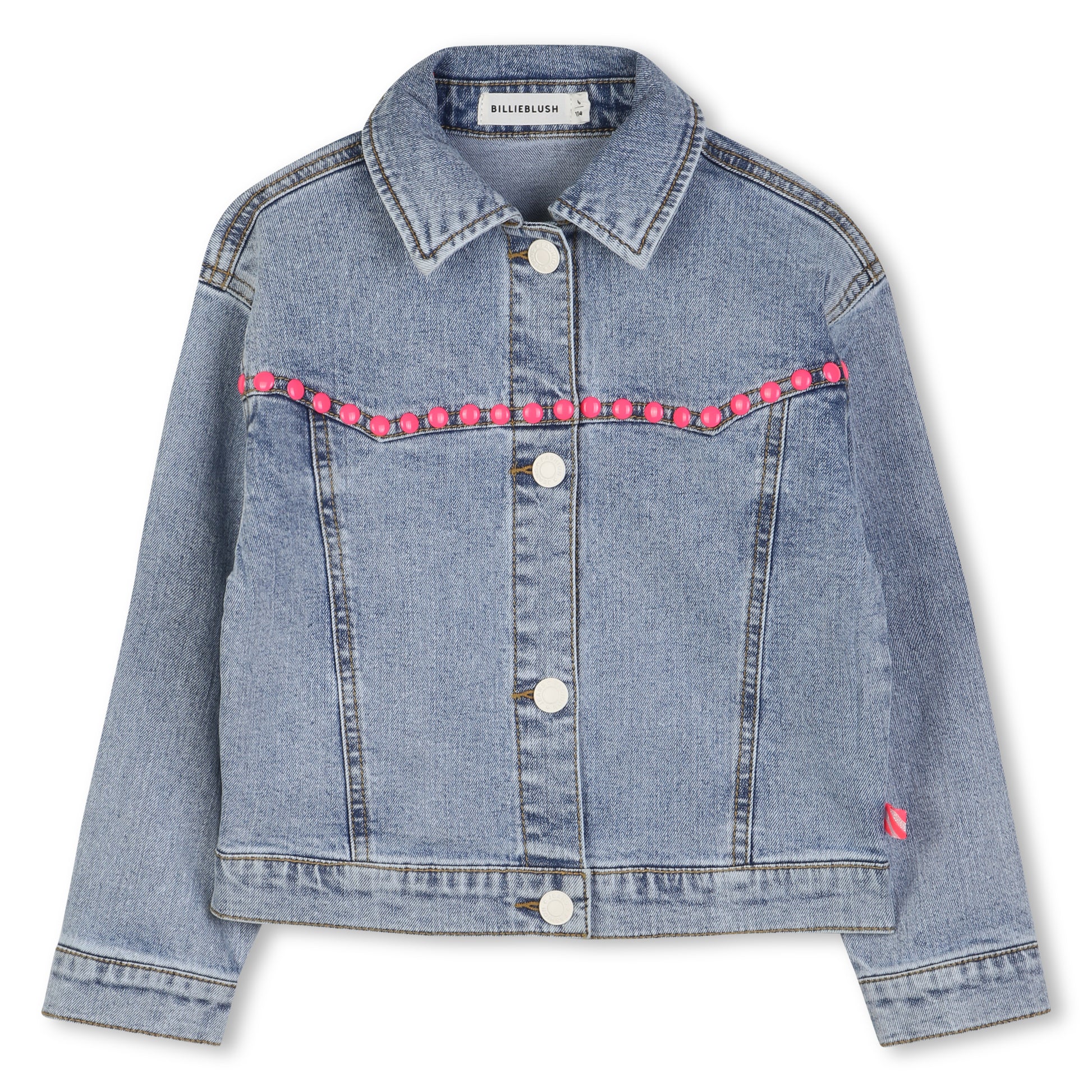 Stay cool and stylish this summer with the Billieblush Girls Double Stone Brushed Denim Jacket. With its sparkling details and lightweight design, it's perfect for any summer adventure. Dress up or down for a versatile and playful look. (Plus, it's double stone brushed for extra softness!)