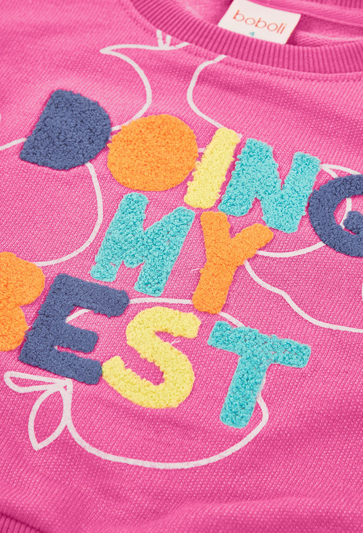 Wrap your little one in cosy comfort with this vibrant fuchsia fleece sweatshirt from Boboli. The soft, brushed fabric feels wonderfully warm against delicate skin, while the long sleeves provide extra coverage for chilly days. Perfect for layering or wearing solo, this playful piece brings a pop of colour to any outfit. Whether she's heading to school, the park, or a weekend adventure, this sweatshirt combines practicality with style. A wardrobe essential that's as fun as it is functional.