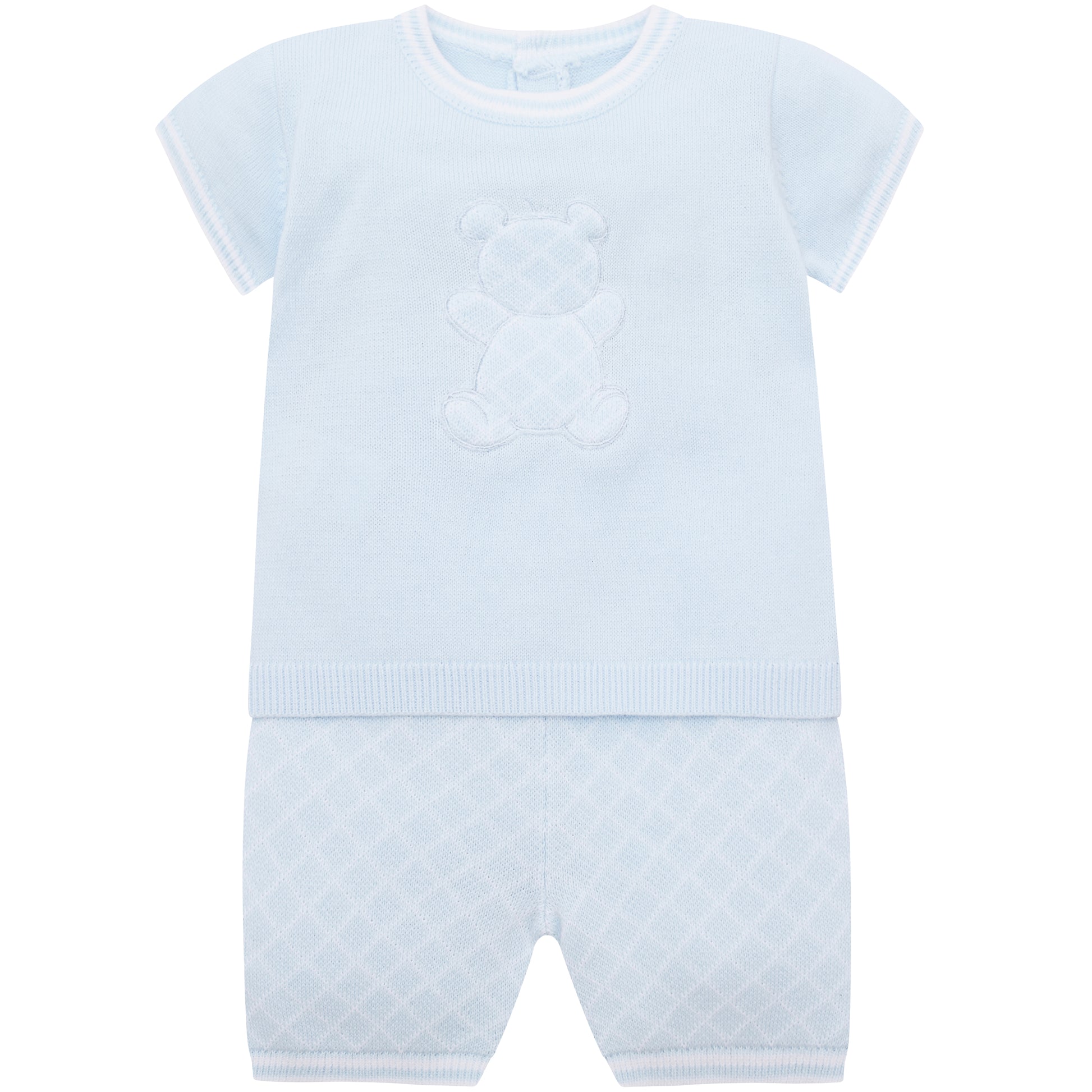 Emile et Rose Baby Boys Blue 2 piece Top and Shorts with Check Bear Motif