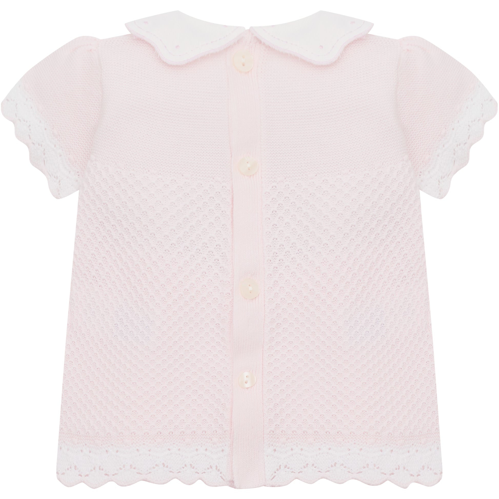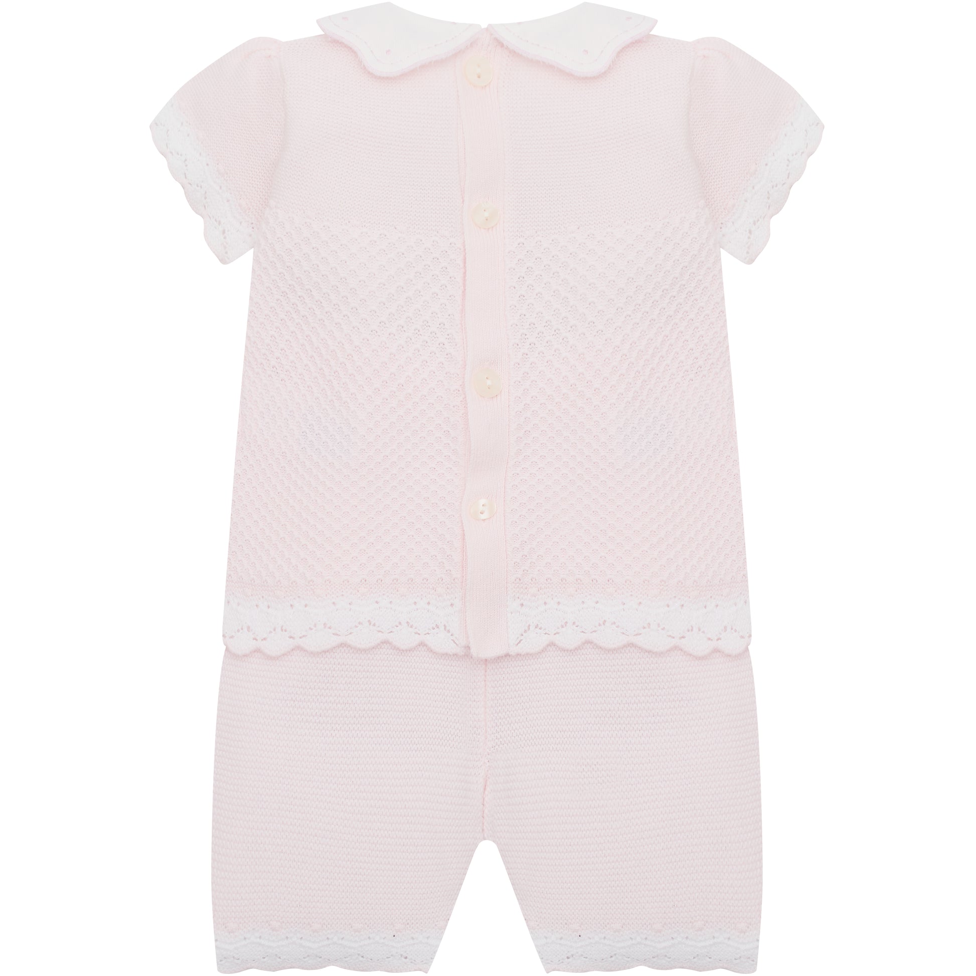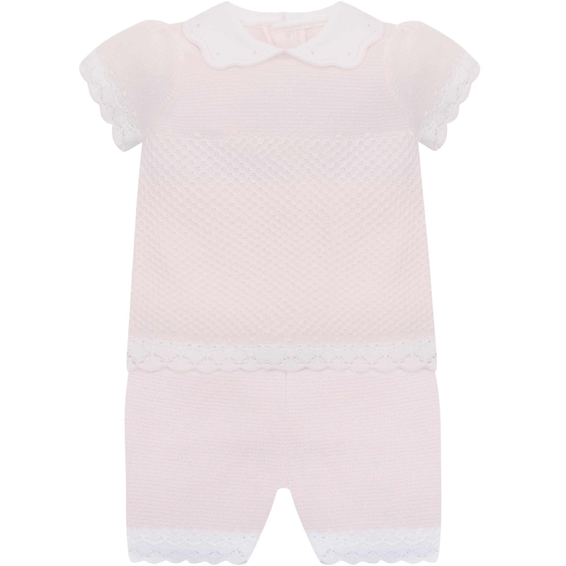 Emile et Rose Baby Girls Pink 2 piece Top and Shorts with Crocheted Hems & Embroidered Collar