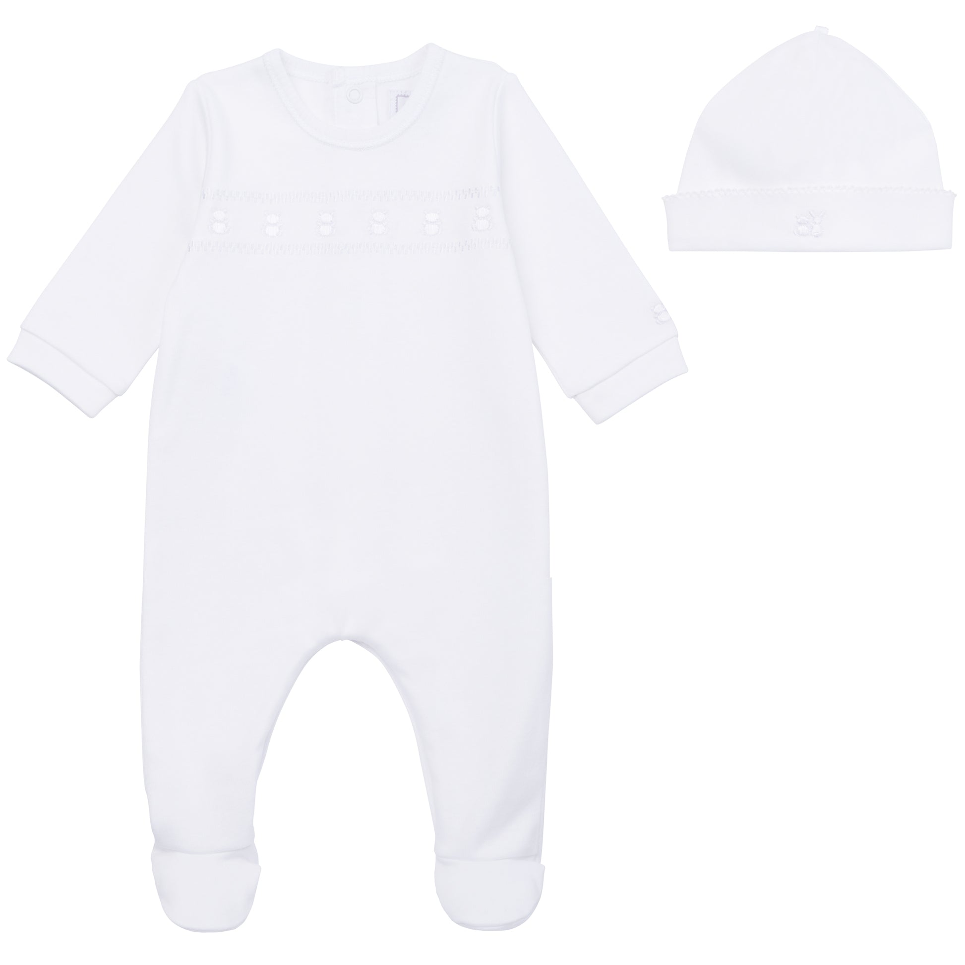 Emile et Rose Baby White Unisex Babygrow with Teddy Embroidery and Hat